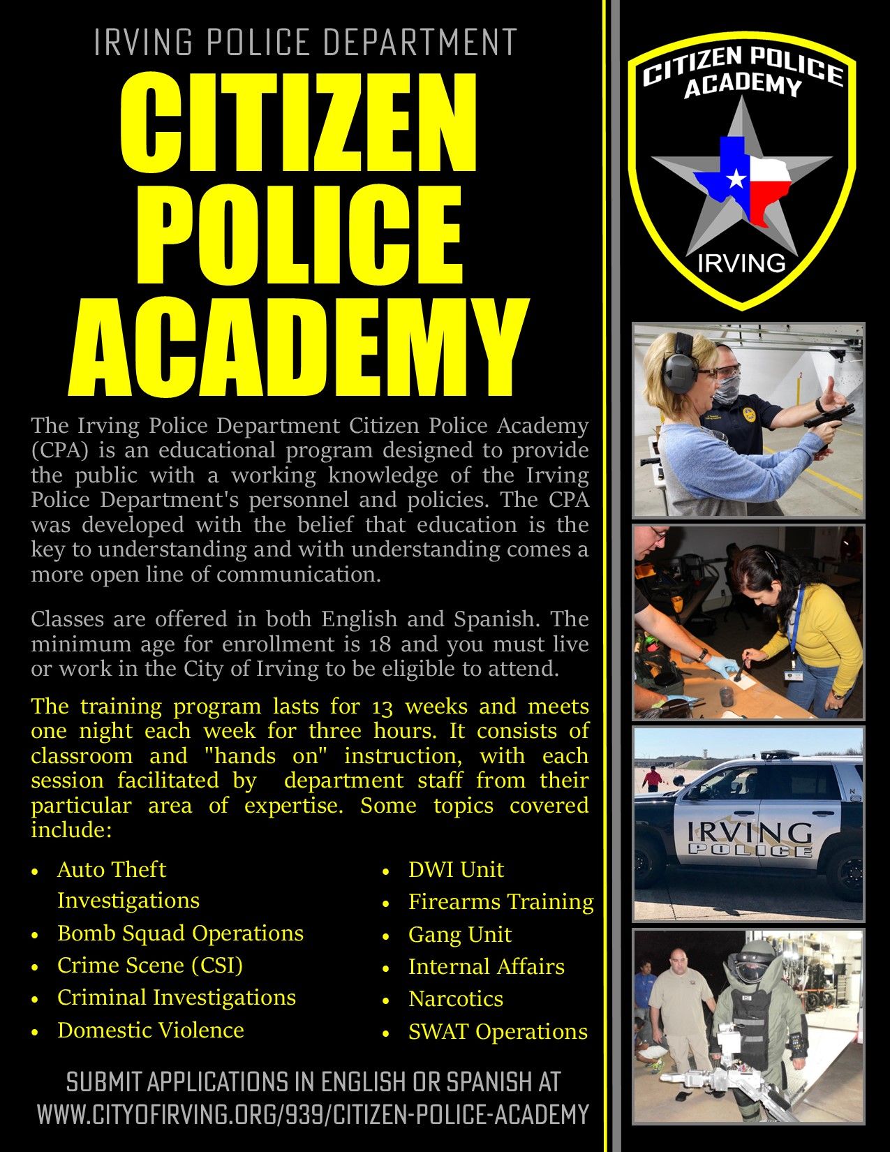 Irving Police Dept On Twitter We Are Currently Accepting Applications For A Summer Citizen S Police Academy The Class Will Meet On Tuesday Nights From 7pm To 9 30pm Beginning May 24th For 13